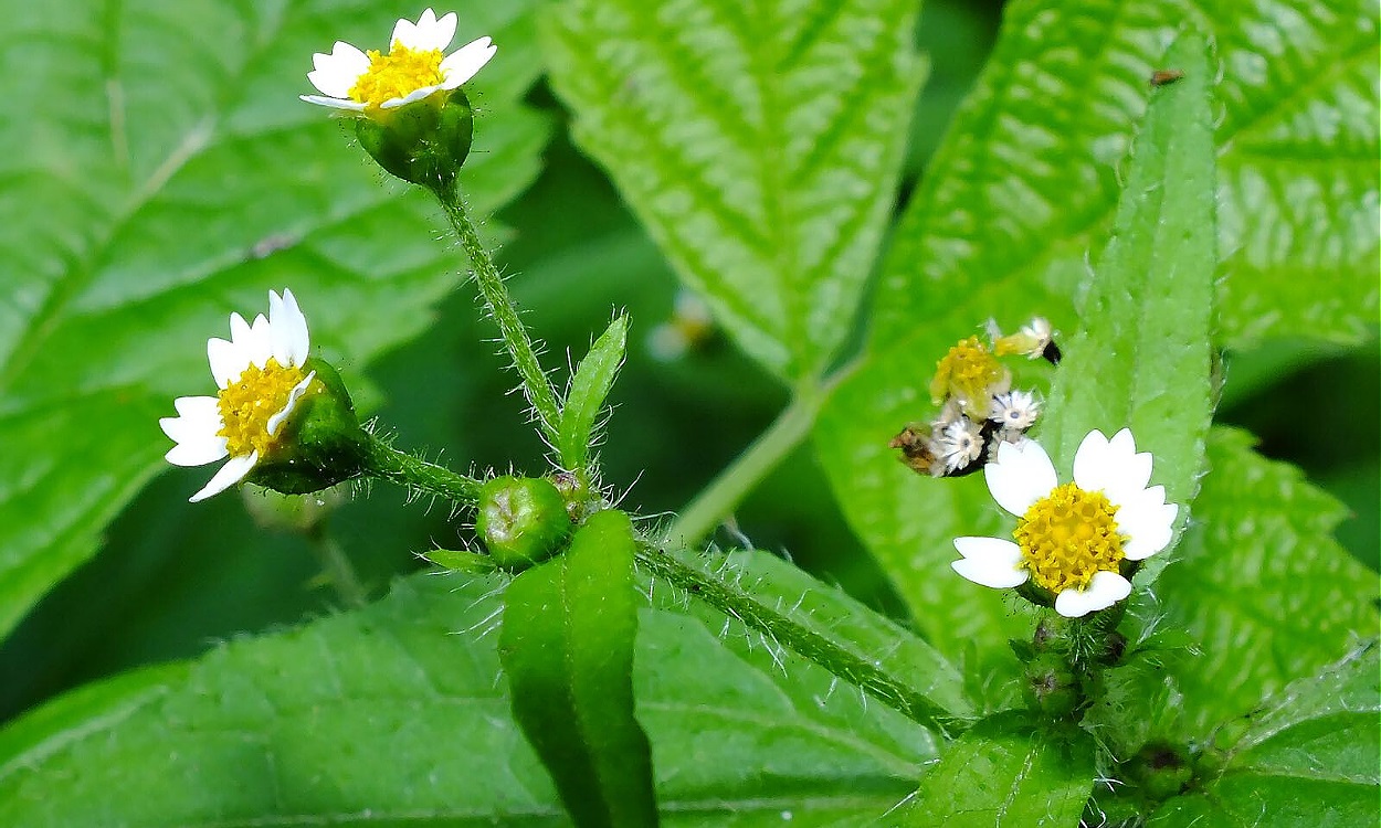 La Galinsoga quadriradiata Ruiz & Pav., comúnmente conocida como Colmillo blanco, guasca o mielcilla, es una planta anual que forma parte de la familia Asteraceae. Esta especie, originaria de México y América del Sur tropical, se ha extendido a nivel mundial, adaptándose a una variedad de climas y entornos. A menudo se encuentra en áreas perturbadas y terrenos agrícolas, donde puede crecer rápidamente y competir con cultivos establecidos.